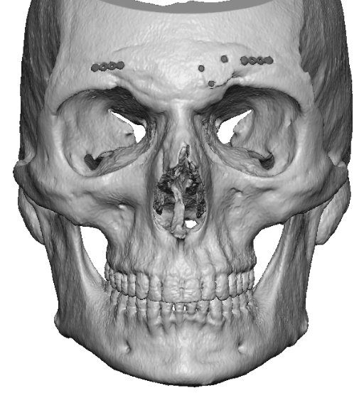 Placement of custom forehead-brow and nasal implants.