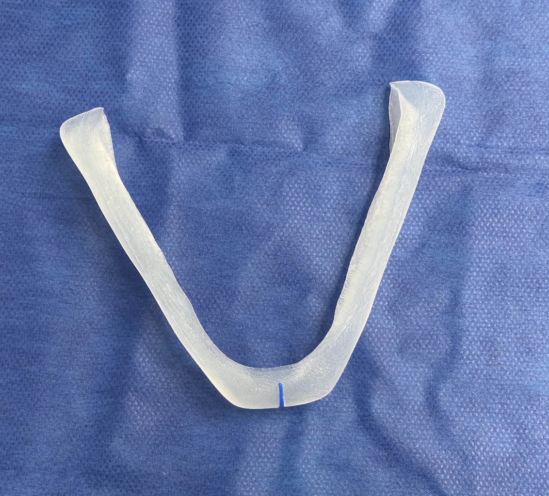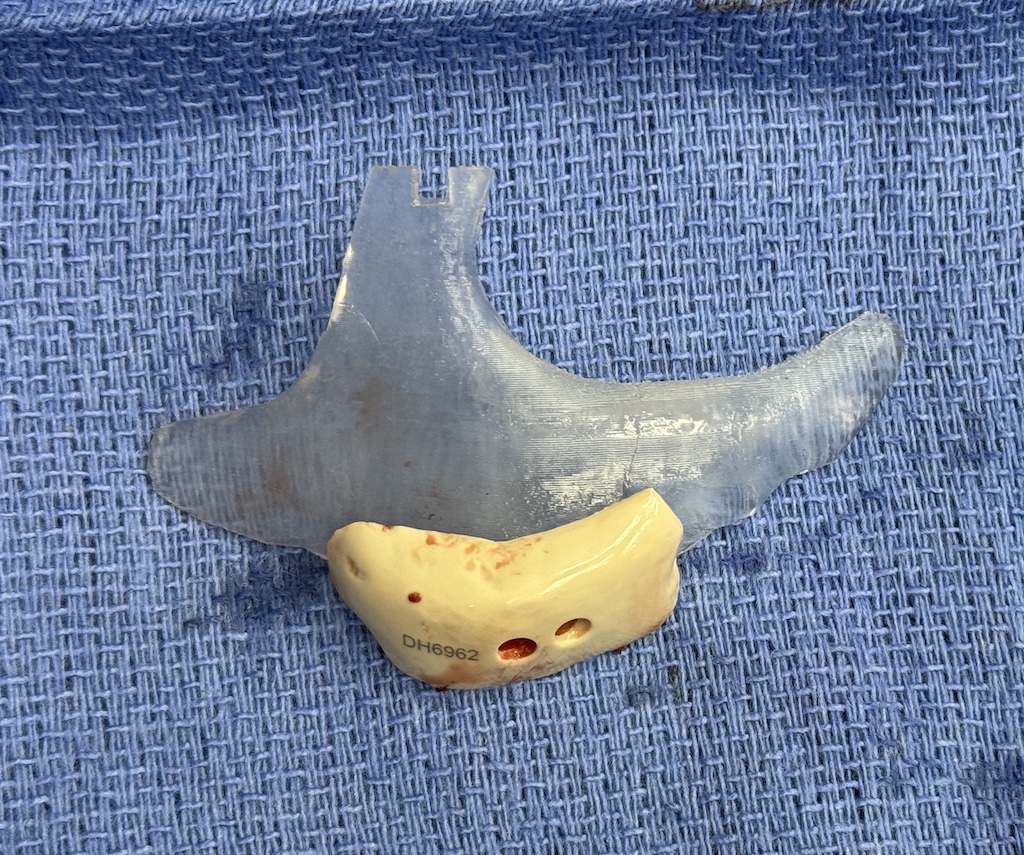 Style 1 square chin implant removed and replaced with a custom square chin implant shape through a submental approach.