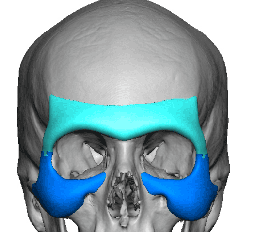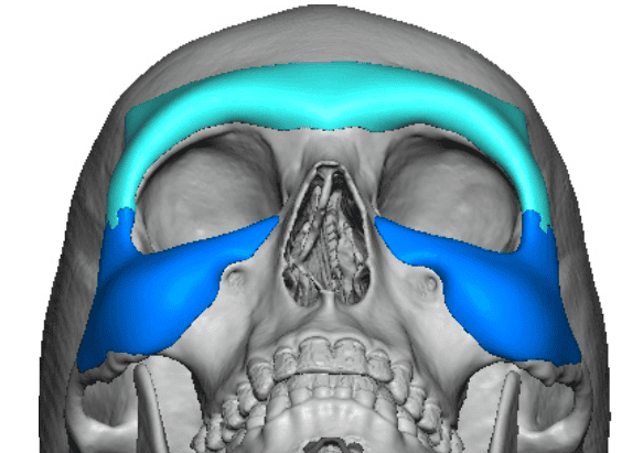 Placement of custom forehead implant to smooth to forehead and reduce the prominence of the brow bone break.