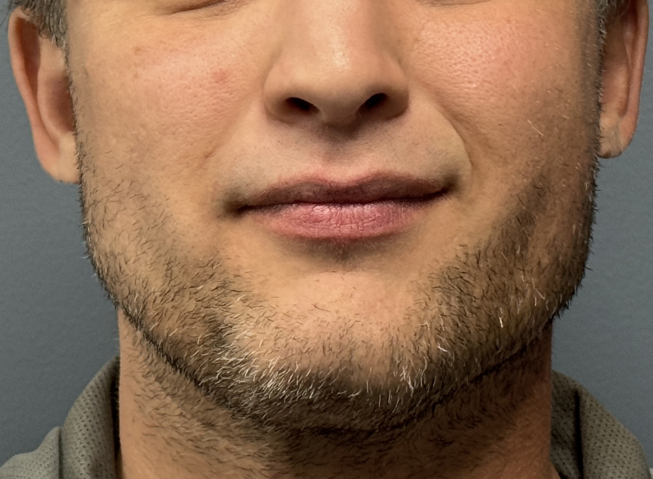Placement of modest custom jawline implant with 6mms chin projection and 7mm jaw angle widths...keeping hips natural jaw shape.