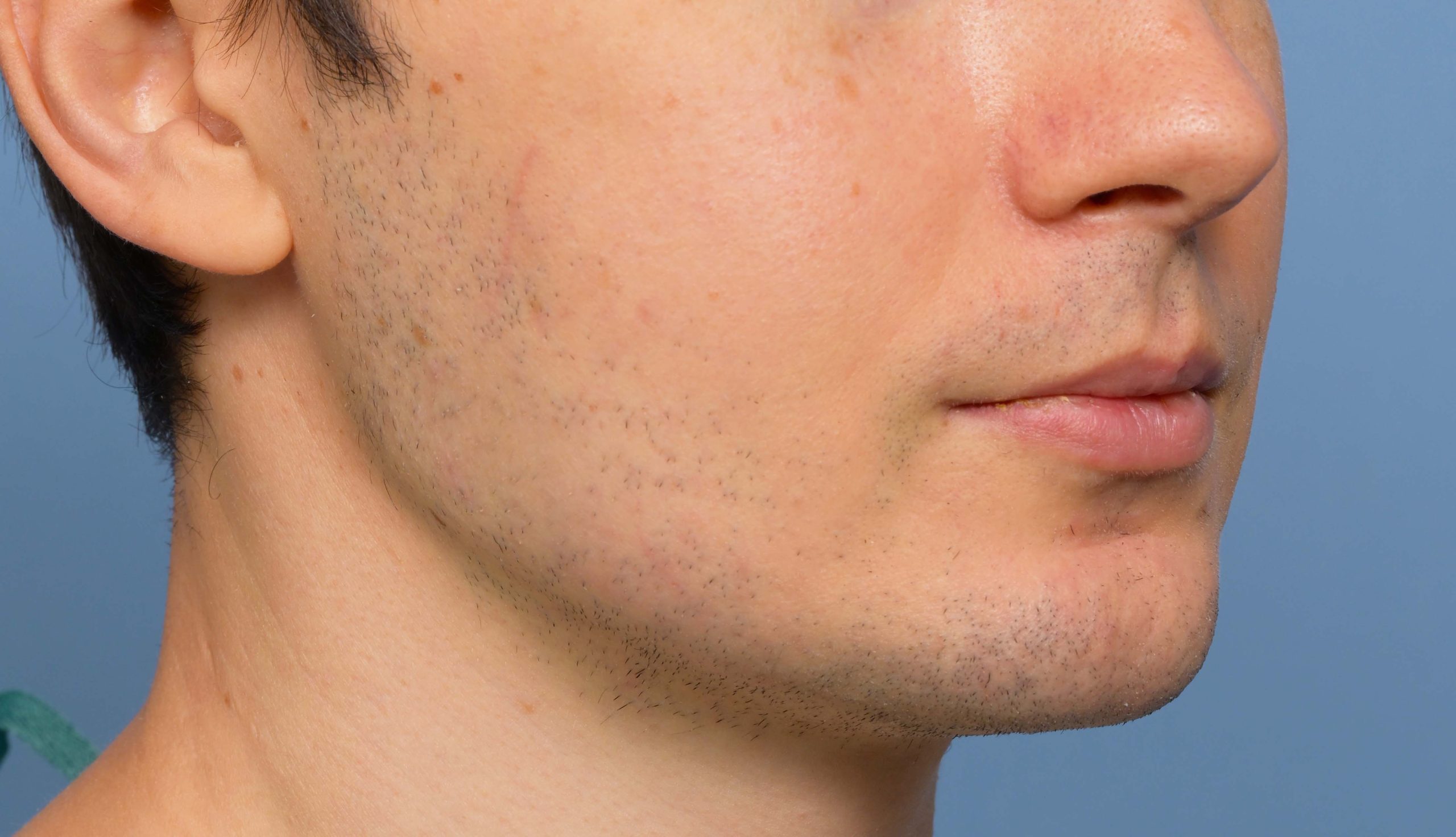 Desire for jawline augmentation to change the steep mandibular plane angle shape to his natural jawline shape.