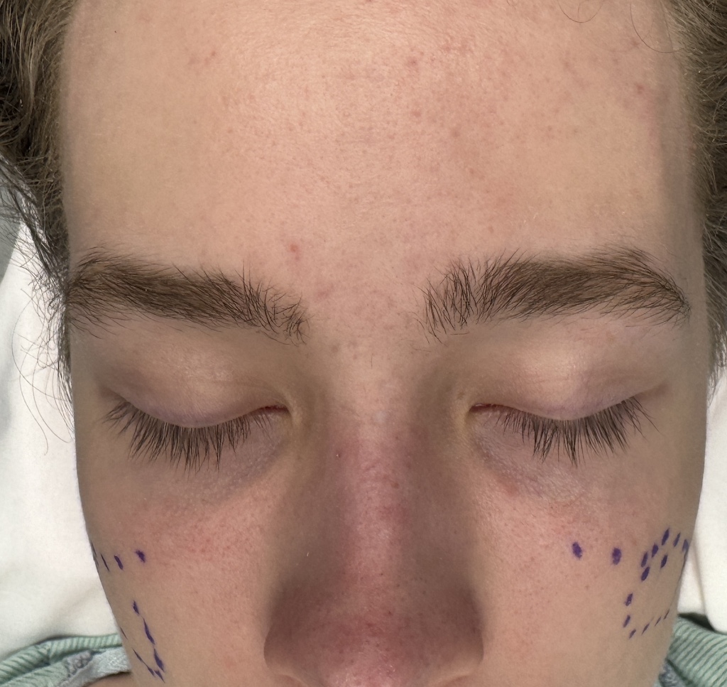 Desire for combined periorbital and cheek augmentation. Has prior small PEEK cheek implants that had limited augmentation effect.