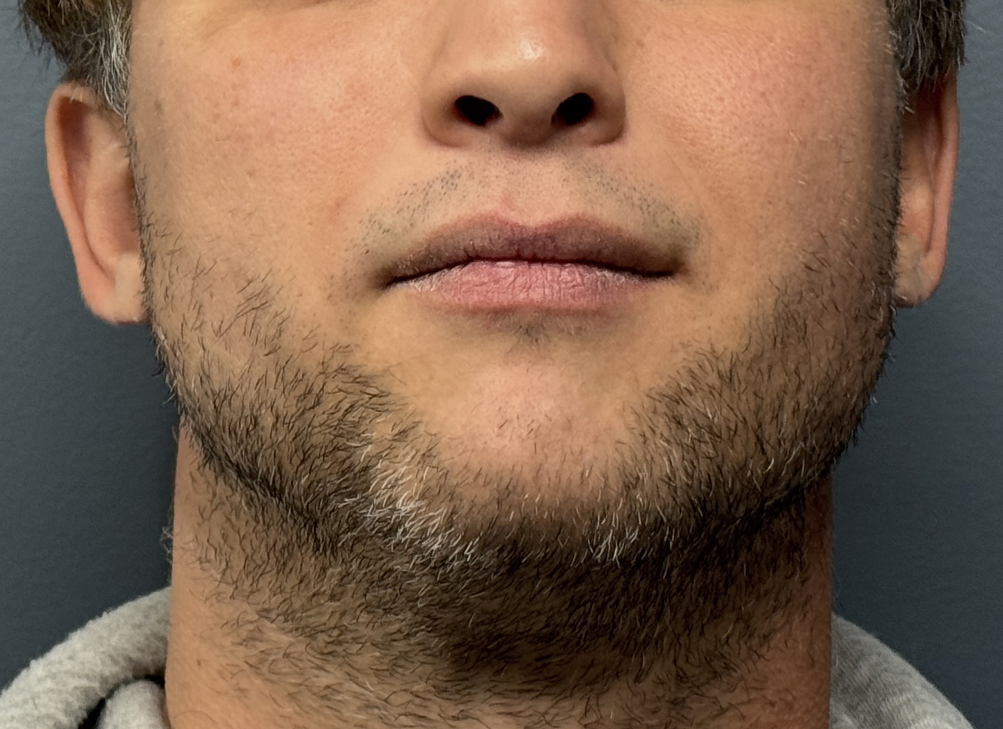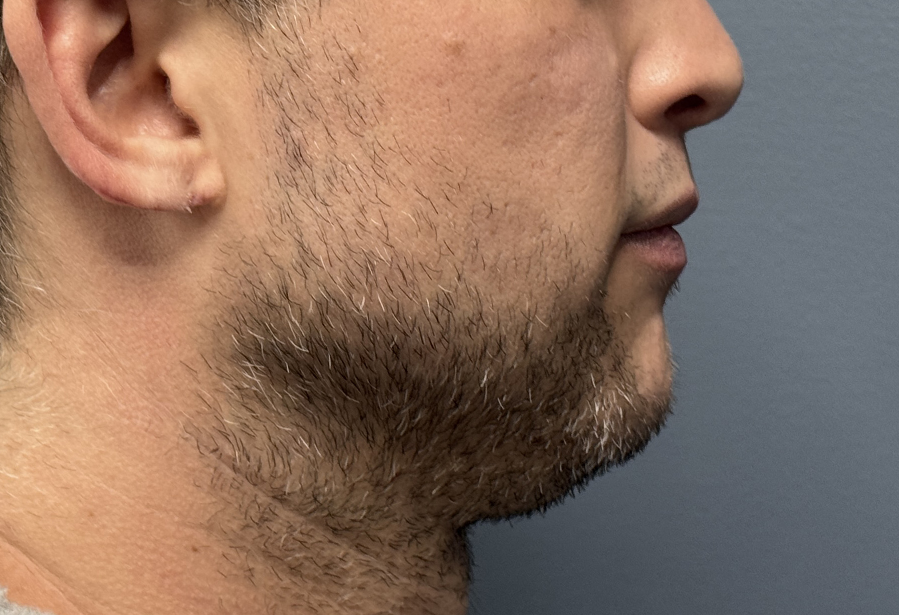 Placement of modest custom jawline implant with 6mms chin projection and 7mm jaw angle widths...keeping hips natural jaw shape.