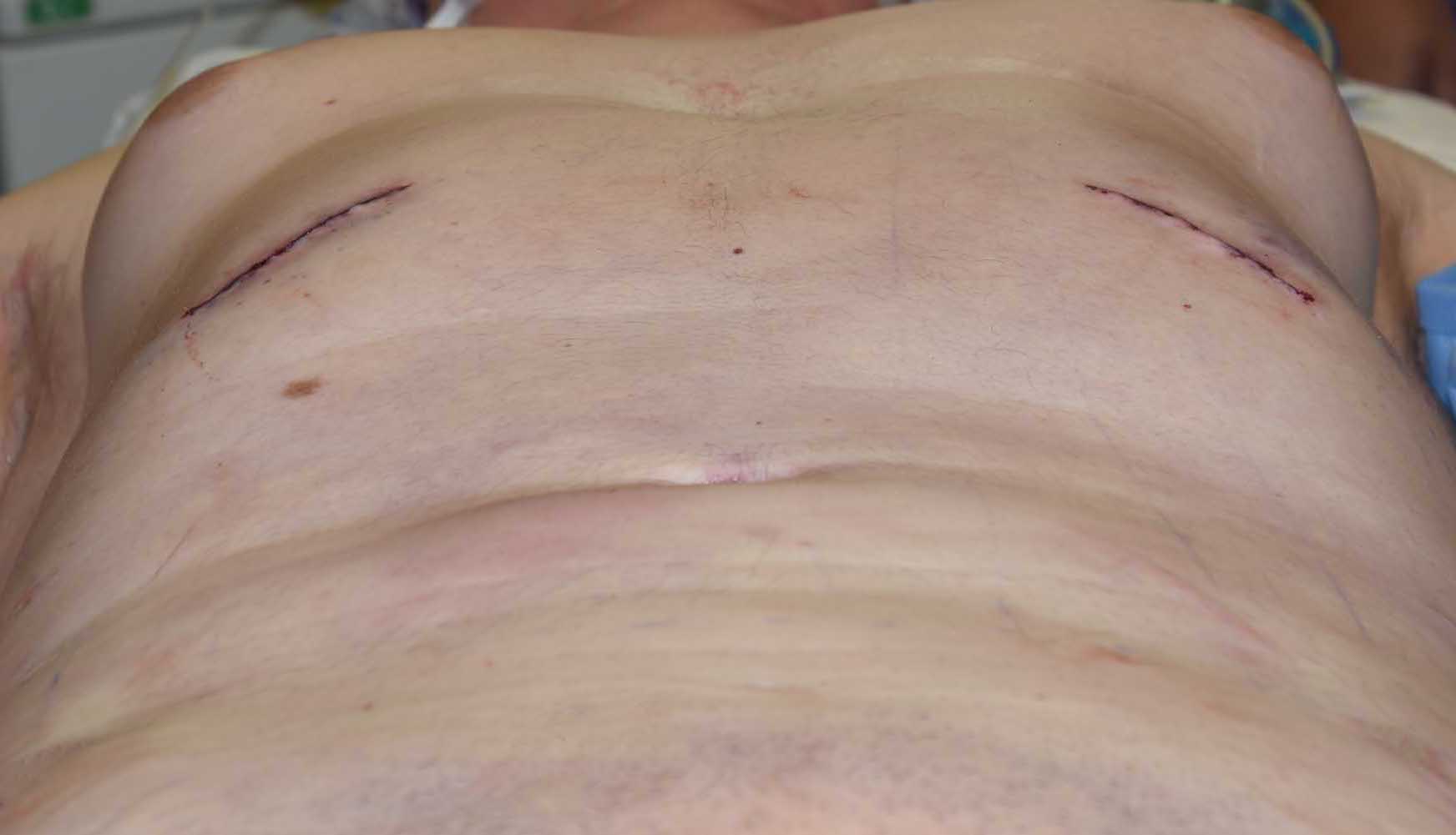 Bilateral subcostal rib surgery with left excision, shaving and cartilage cuts and right medial and lateral cartilage cuts.