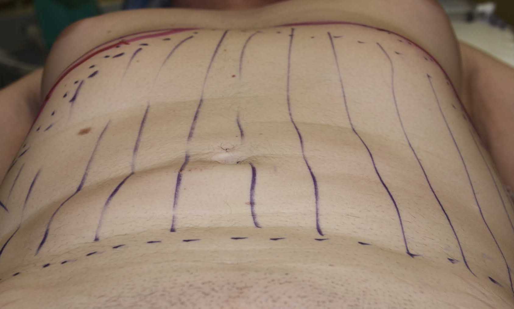Abdominal liposuction combined with direct subcostal rib resections. (ribs #9mand 10)