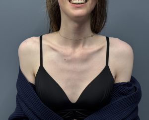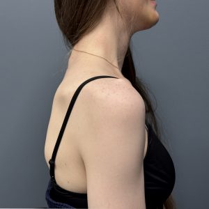 The desire for more narrow shoulders is for those patients who seek a more feminized appearance to their upper torso. This is typically requested in the transgender male to female or the cis-female patient. In my experience such requests are equally split between these two patient groups. Shoulder feminization is achieved by removing a segment of bone from the clavicles which allows the bideltoid distance to decrease. This occurs because anatomically the clavicle is the lone horizontal bone of the body and the only structure that keeps the shoulders away from the sternum.