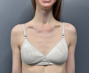 While most patients have both shoulders narrowed at the same time (bilateral clavicle reduction osteotomies), a few patients may prefer to separate the procedure into two stages. While lacking the efficiency of a bilateral procedure, a staged approach does offer a less challenging recovery (with one good arm) and can be performed as an outpatient surgery. The timing between the two stages is patient dependent but having full arm range of motion on the first shoulder narrowing makes sense before proceeding with the second surgery. (minimum of 6 to 8 weeks)