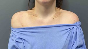 Aesthetic outcomes in shoulder width reduction surgery is fundamentally about how much width reduction is visually achieved and how well do the supraclavicular scars look long term. As would be suggested by the amount of clavicle bone removed it is a near 1:1 relationship (close to 0.9) so most patients can expected an approximate 1 inch reduction per each shoulder. But shoulder narrowing is more than just about how much numerical reduction in shoulder with that is achieved. An equally important effect is the more rounded (less square ) shape to the shoulders that results. Most supraclavicular scars do well as defined by how many patients have ever requested a scar revision for them…which is very low in number.