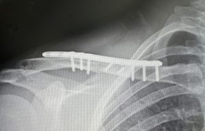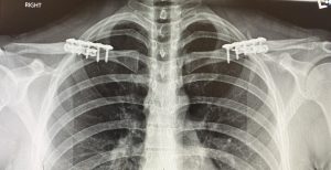 A common postoperative question is whether the plate and screw hardware will ever need to be removed. Usually it does not unless it causes symptoms such as discomfort or visibility. The latter is the most common reason for removal which can be done anytime after 12 months or one year from the original surgery. Hardware removal is not associated with the significant recovery associated with the initial clavicle reduction surgery in terms of arm range of motion restriction.