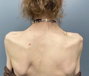The desire for more narrow shoulders is for those patients who seek a more feminized appearance to their upper torso. This is typically requested in the transgender male to female or the cis-female patient. In my experience such requests are equally split between these two patient groups. Shoulder feminization is achieved by removing a segment of bone from the clavicles which allows the bideltoid distance to decrease. This occurs because anatomically the clavicle is the lone horizontal bone of the body and the only structure that keeps the shoulders away from the sternum.