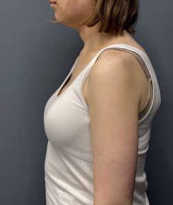 While most patients have both shoulders narrowed at the same time (bilateral clavicle reduction osteotomies), a few patients may prefer to separate the procedure into two stages. While lacking the efficiency of a bilateral procedure, a staged approach does offer a less challenging recovery (with one good arm) and can be performed as an outpatient surgery. The timing between the two stages is patient dependent but having full arm range of motion on the first shoulder narrowing makes sense before proceeding with the second surgery. (minimum of 6 to 8 weeks)