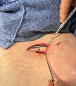 The placement of the incision is directly above the best location to remove the segment of clavicle bone which is at its inner third. This is the thickest part of the clavicle by cross-sectional diameter and is also the most stable being closest to the sternum. The small skin incision is placed, not over the bone, but up above in the supraclavicular fossa which provides for the most favorable scar healing. The segment of bone removed is typically in the range of 2.0 to 3cms per side. Short rigid plate and screw fixation of the shortened clavicle is used for stabilizing the two bone ends. This results in a bideltoid width reduction of 5 to 6 cms which creates a a more narrow and slightly rounded shoulder appearance. This has also been shown to result in uncomplicated bone healing and no adverse effects on shoulder function.